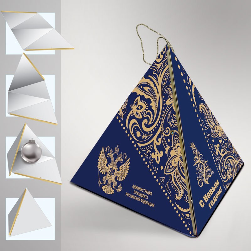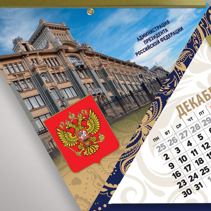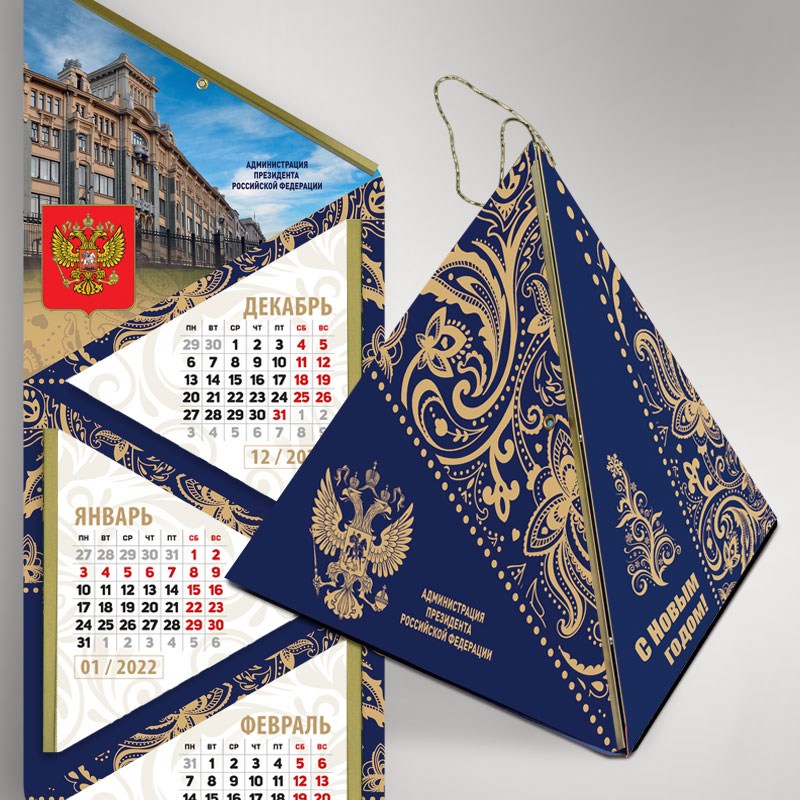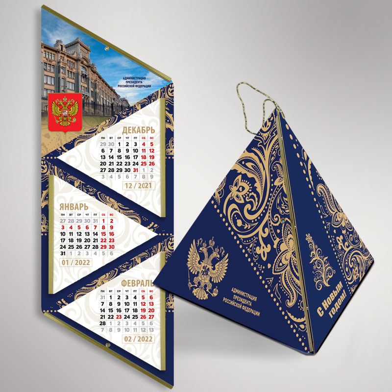 Эксклюзивный, ранее не издававшийся календарь, который превращается в оригинальный футляр для новогоднего подарка. Календарь может быть укомплектован любым сувениром по Вашему желанию, например, стеклянным ёлочным шариком с логотипом, изготовленным под заказ. Стоимость сувенира рассчитывается отдельно.