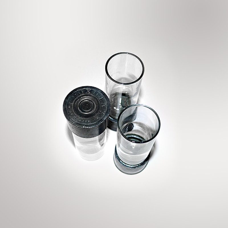 Мужской сувенир. В основе подарочного набора - три стопки-патрона. Стеклянные стопки из прозрачного стекла, с донышком из литого металла - тяжелые и увесистые. Это отличный мужской сувенир. Компактнй, прикольнй, недорогой, но выглядит очень серьезно и очень необычно.